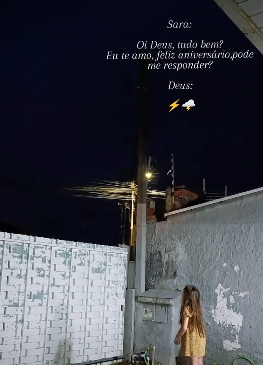 Enkele seconden later verlicht een bliksemschicht de hemel. Geschrokken maar verrukt reageert het kleine meisje vol vreugde. Veel gebruikers op sociale media interpreteerden het moment als een “goddelijke reactie” op haar onschuldige gebed.