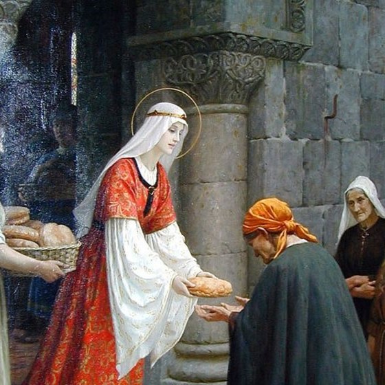 Elisabeth, dochter van koning Andreas van Hongarije, werd in 1207 geboren. Op jeugdige leeftijd ten huwelijk geschonken aan de landgraaf van Thüringen, Lodewijk, werd zij moeder van drie kinderen. In haar godsdienstig leven legde zij zich bijzonder toe op de beschouwing. Na de dood van haar man voelde zij zich geroepen tot het armoede-ideaal en richtte zij een ziekenhuis op, waarin zij zelf de zieken verzorgde. Zij stierf te Marburg in 1231.