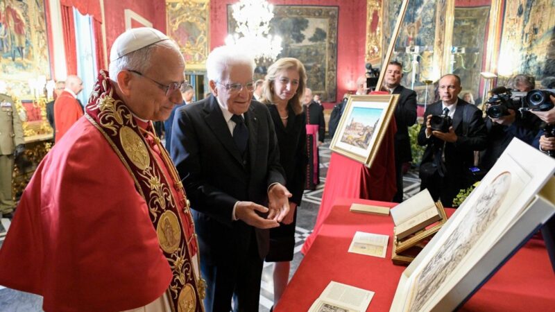 U hoort de vertaling van de toespraak van de paus bij het officiële staatsbezoek aan Italië en aan de Italiaanse president op dinsdag 14 oktober.