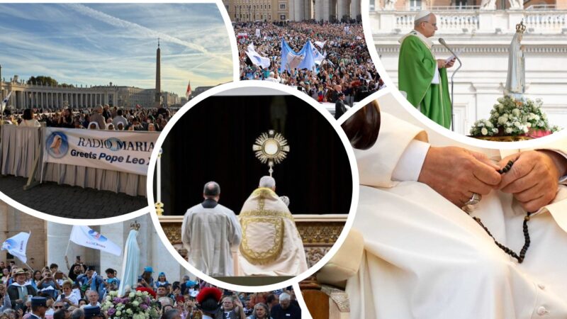 In aanwezigheid van het echte beeld van Onze Lieve Vrouw van Fatima, dat speciaal voor deze gelegenheid even over en weer werd gevlogen vanuit Portugal, bad de Heilige Vader op de avond van de 11e oktober het rozenhoedje, gevolgd door een moment van Eucharistische aanbidding. De volgende dag celebreerde hij, samen met de vele pelgrims én met duidelijk aanwezigheid van Radio Maria, het jubileum voor de Mariale Spiritualiteit. U hoort de meditatie en de homilie die de Heilige Vader op deze momenten heeft uitgesproken.